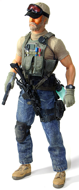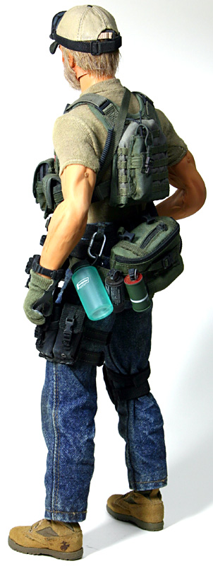 | SpecFIGUREs 2誌上にも書いたのですが、初の複数フィギュアによるコンセプトジオラマ、という事だったので各フィギュアのバランス、つまり統一感を与えつつも個性を出す、という難しいテーマも含んでおり、それが困難でもあり、かつ、楽しい作業となりました。 当初はa.c.e.のBlack Waterキャップだけ一緒で、あとは適当でもいいかな?と思っていたのですがそもそもキャップがC.F.E.2005の会場配布の限定品の為、複数用意するのが大変難しく断念していました。 それで、全員プレートキャリア使用(ただし各違うモノを)、という縛りだけ決めて制作をスタートしたのでした。 |