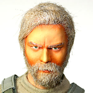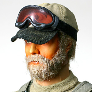 ↑ヘッドはHOT TOYSの「POLAR MOUNTAIN STRIKER」より。 眼と唇を塗装を落として再塗装、肌部分は上からエアブラシでオレンジと茶のクリア混色をオーバーペイント。 結果的にやはり、ちょっとオレンジがきつすぎる感じになってしまいました。 髪と髭はいつもどおりフェイクファーを貼ってあります。 接着にはアクリル絵の具用の補完剤で、マットメディウムというモノを使用しました。 さすがに髪のモールドは削った方が良かったかな…? それからAFAのゴーグルのせいで目立たないのですが、a.c.e.のBlack Waterキャップは一旦ツバを取り外して、被る部分全体が浅くなるように短く縫い直してあります。 |