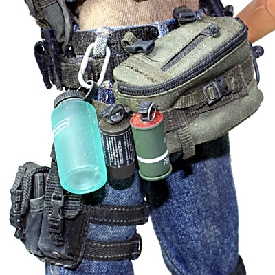 ↑M4マグポーチサブロード、ウエストポーチ、ウォーターボトルはHOT TOYS。 ハンドグレネードはBBI、スモークグレネードはDML。 ジーンズもDML。 |