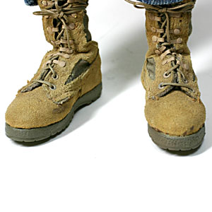 ↑ブーツはTOY SOLDIER製。 スピードレースのフックをOSCFエッチングパーツを使用、塗装し、ヒモを換えてディテールアップ。 ブーツ自体はつま先のカタチを整え、パステルで汚した他は製品のままです。 |